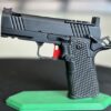 This lightweight carry gun comes in at 34.1 oz. Chambered in 9mm and features a V12 ported slide and barrel. The COS21 is already a smooth flat shooting gun but with this porting, it is even more stable when shooting bursts. This model features a tactical hard coat aluminum frame and Flat Top Tactical slide design with custom serrations.  It has a match grade Kart crowned barrel, Medium Flat custom trigger, full-size standard Cheely aluminum grip, Cheely steel magwell, ambi-safety, Optic Ready (C&H prep) and Cerakoted in Green Riptile. The gun ships with 3 magazines with color coded base plates.