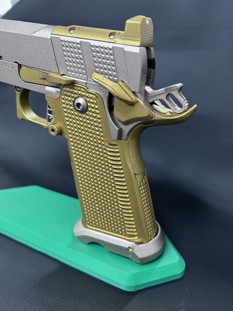 We enhance it further with our Aluminum grip, Cosaint magwell, Pinned the grip safety, RedDirt medium flat trigger, the new Cosaint Extended Slide Stop and optic-ready preparation for the C&H Precision Weapon plate of your choice. Weighing just 32.6 oz., the Dara manages recoil effortlessly without relying on extra weight.